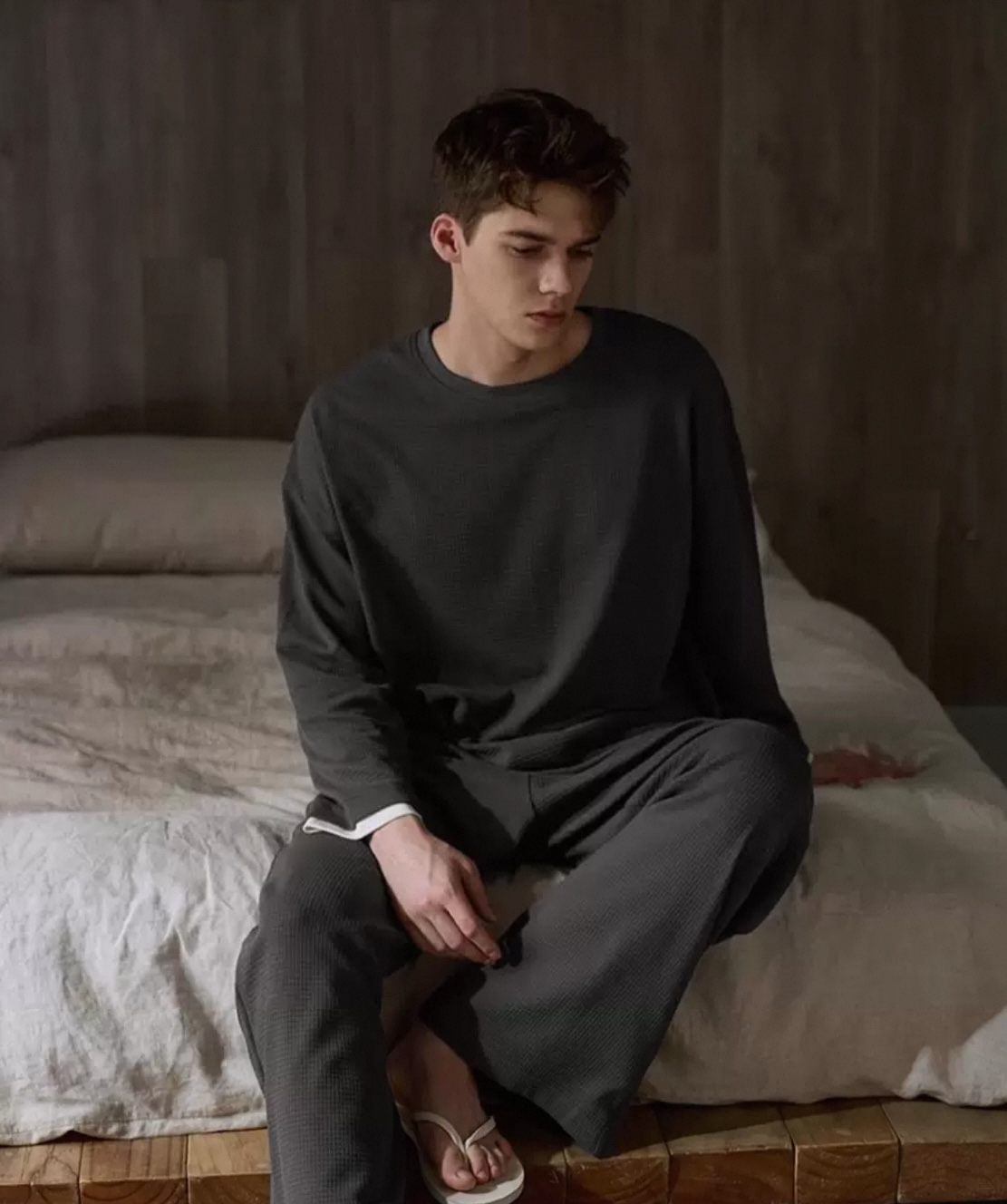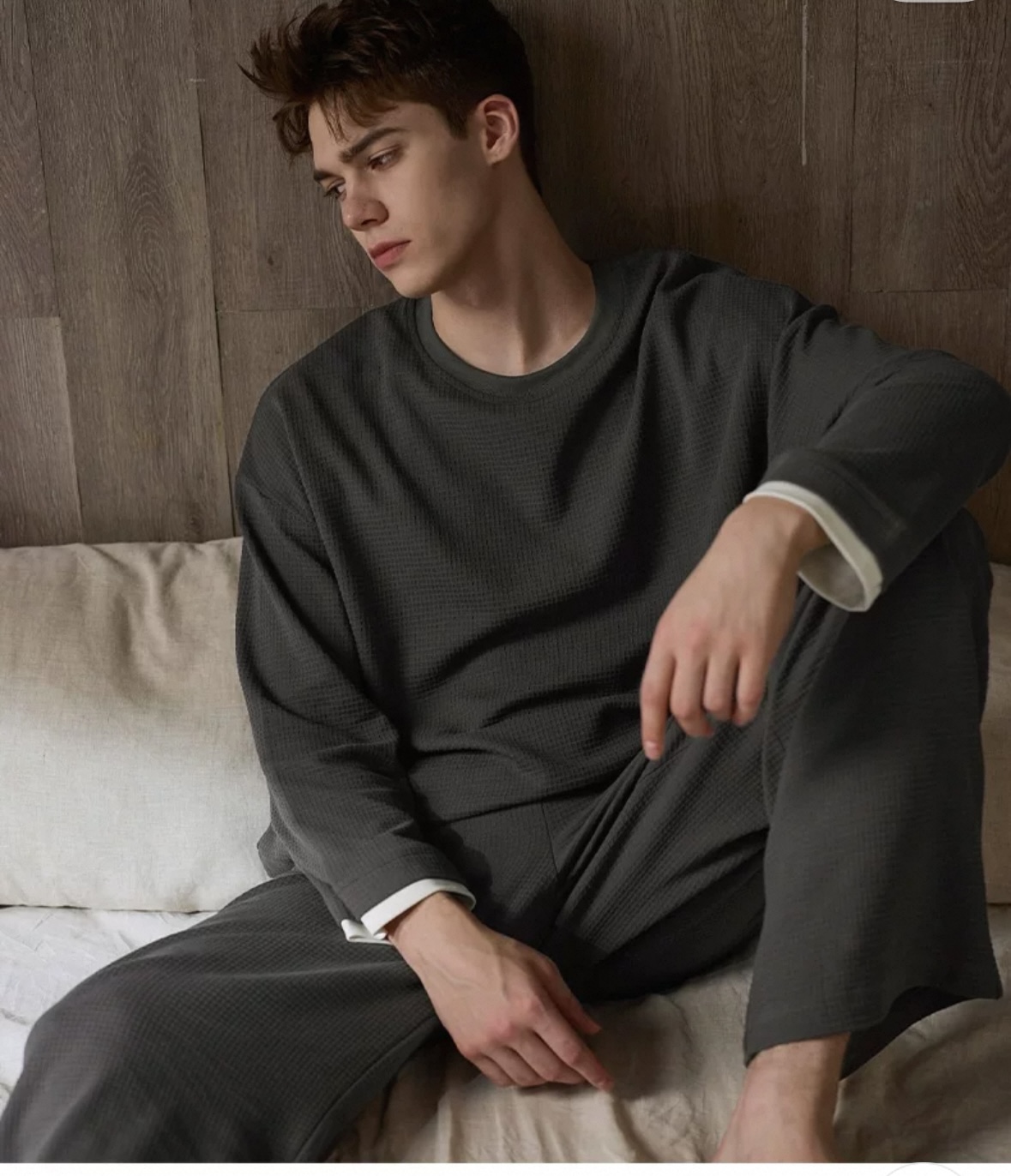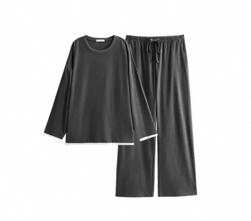 Waffle-Knit Long-Sleeve Loungewear Set